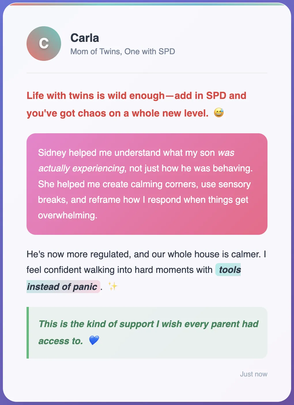 It helped me go from exhausted and overwhelmed to confident and calm—using the same classroom-tested systems I mastered over 15 years as a special education teacher.